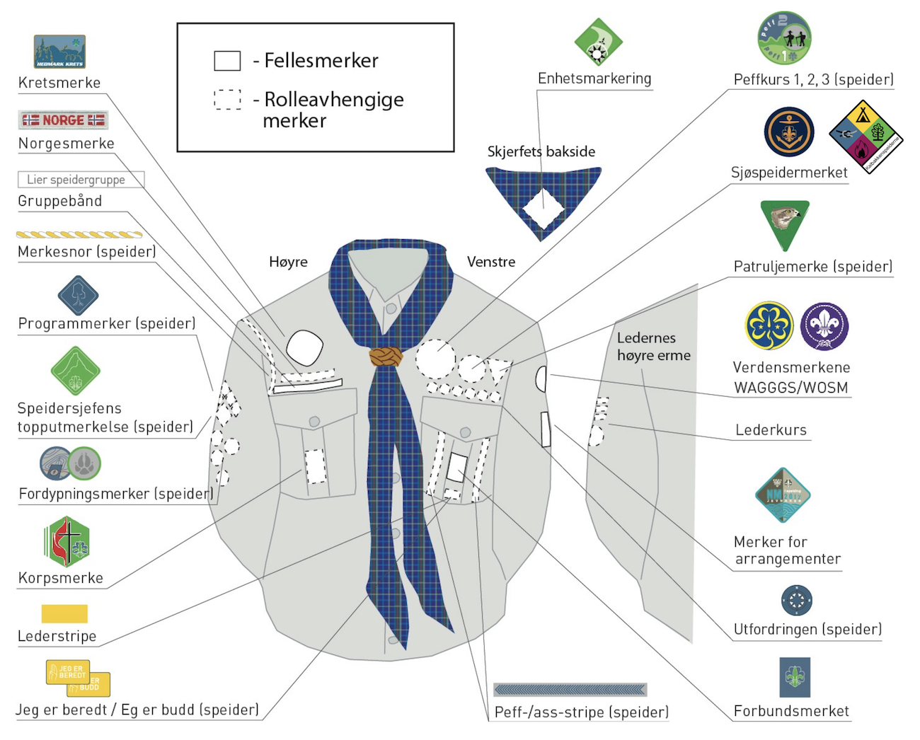 Vi er opptatt av merker i speidern. Derfor finnes det et hav avmerker er for flere anledninger: ferdighetsmerker, deltagermerker, stedsmerker, opplevelsesmerker. Har du hatt bursdsg på speiderleir? Ja, da har vi et merke for det også. blablabla...
